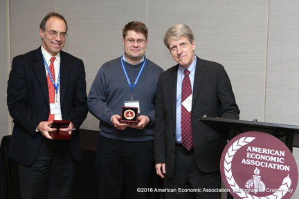Kenneth Hendricks, recipient of the 2015 AEJ: Microeconomics Best Paper Award (Alan Sorensen and Thomas Wiseman, not pictured) |