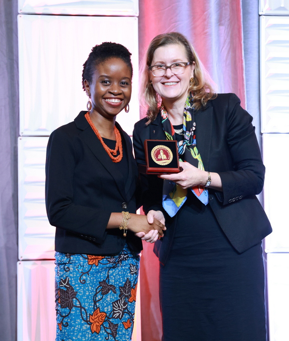 | Enghin Atalay (L) and Daniel Tannenbaum (center) receiving AEJ:Applied Economics Best Paper Awards (not pictured: Phai Phongthiengtham and Sebastian Sotelo) | Oyebola Okunogbe receiving AEJ:Economic Policy Best Paper Award (not pictured: Victor Pouliquen) | |