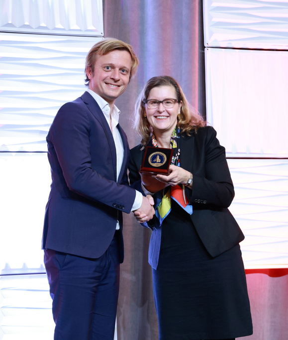 Morten Olsen receiving AEJ:Macroeconomics Best Paper Award (not pictured: David Hémous) |