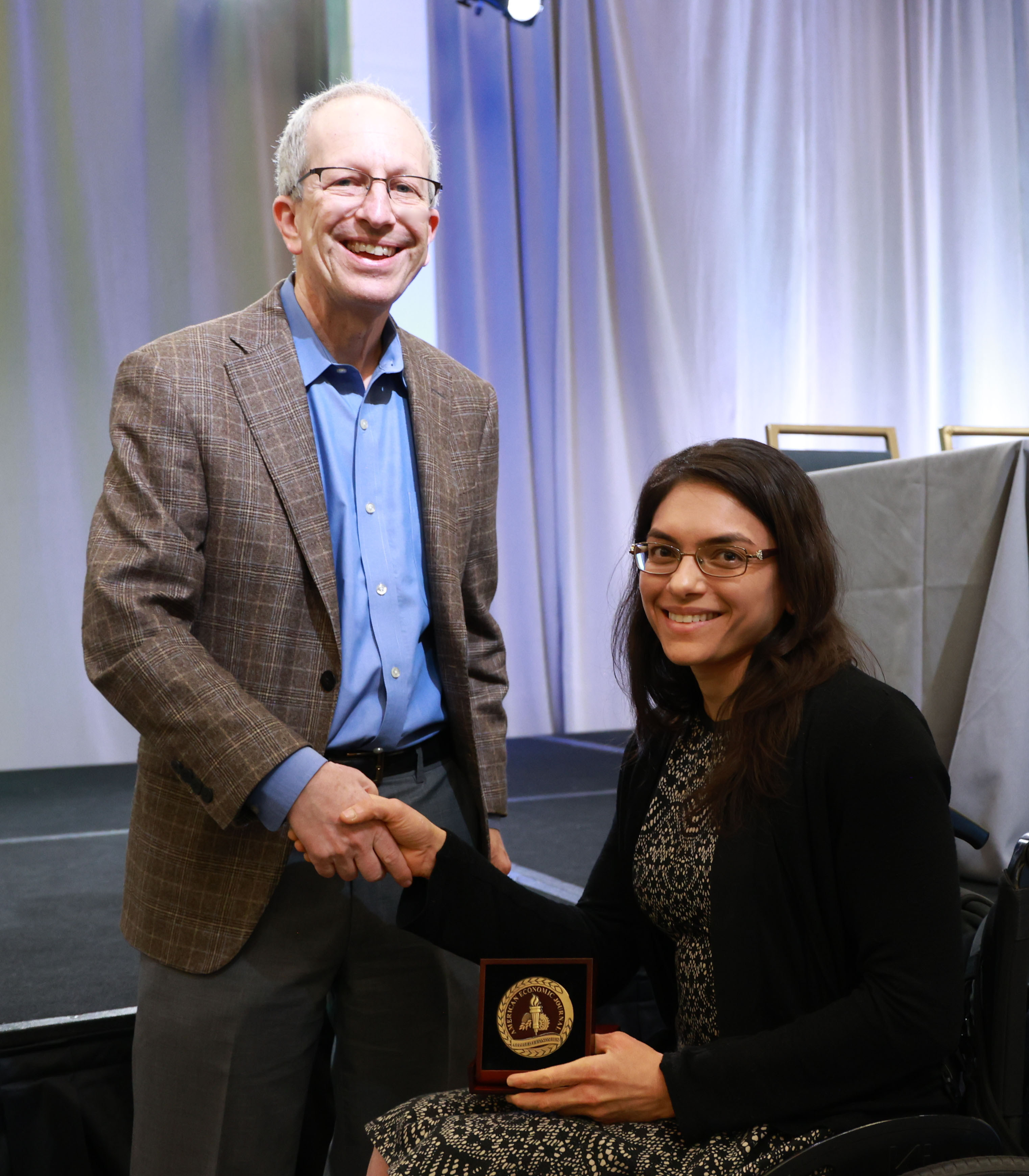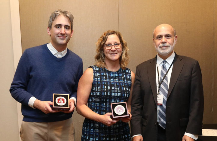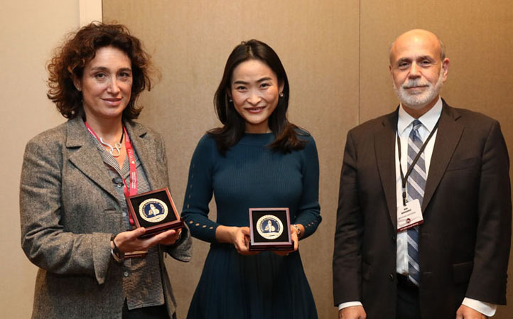 | Manasi Deshpande (L) and Yalun Su (R) receiving AEJ:Applied Economics Best Paper Awards (not pictured: Tal Gross) | ||