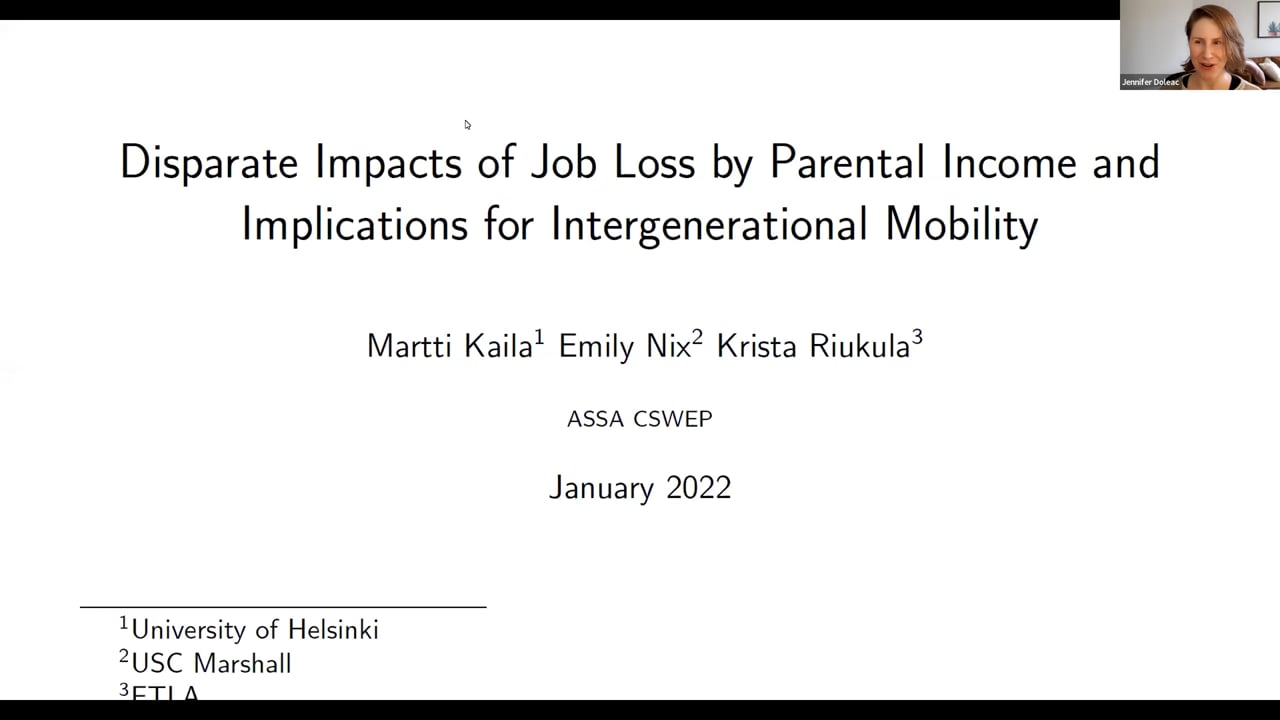Do Richer Parents Cushion the Fall? Disparate Impacts of Job Loss by Parental Income and Implications for Intergenerational Mobility —
