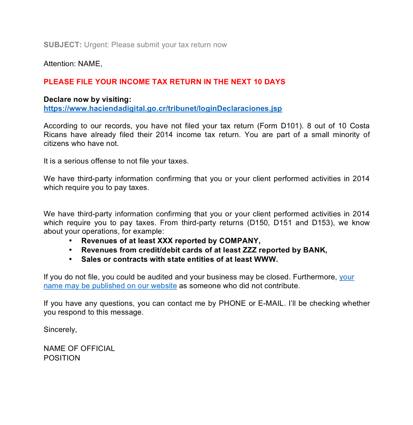 For Costa Rican businesses, the trick was sending the right information so they took the threat of audits and sanctions seriously.