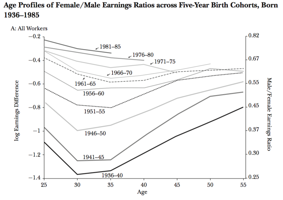 In an article that appears in the Winter 2017 issue of the Journal of Economic Perspectives, authors Chinhui Juhn and Kristin McCue examined the relationship between marriage, children, and what women earned compared to their male counterparts going back generations.