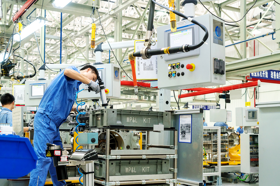 A worker assembles cars at the Jiangxi Nanchang Jiangling Motor Group Company.