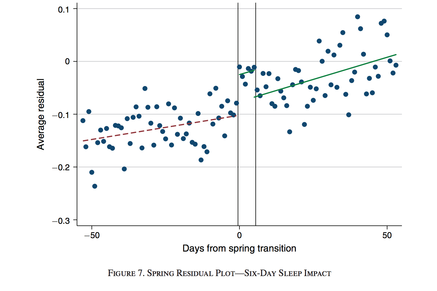 The dangers of driving while tired are well known to experts, but might be underappreciated by most drivers. Smith finds that fatal accidents are slightly but significantly elevated in the week after the daylight saving time sleep disruption, resulting in approximately 30 additional deaths on American roads each March (see figure above).
