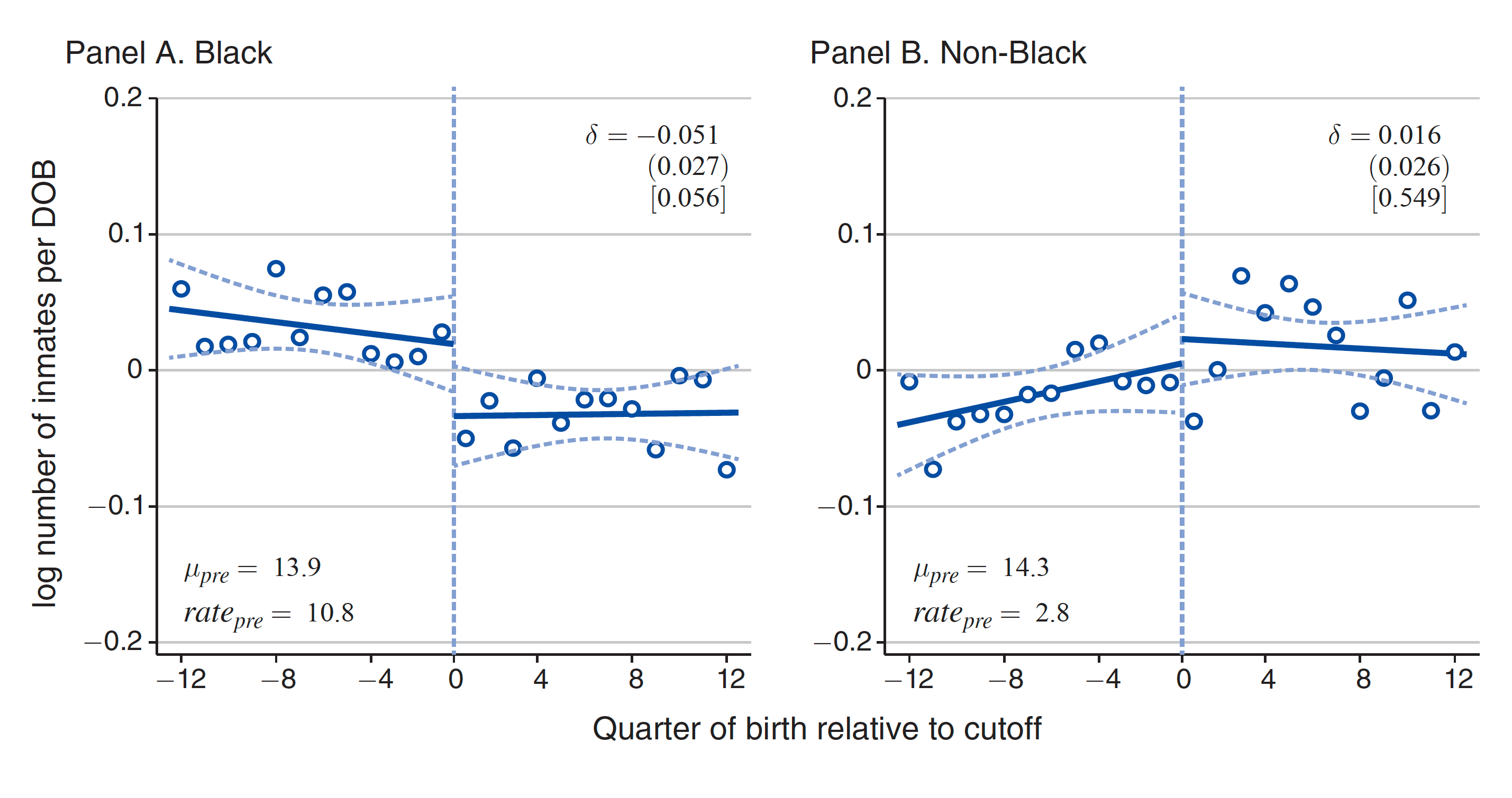 Figure 2 from the authors’ paper shows the impact of this cutoff on adult incarceration in Florida.