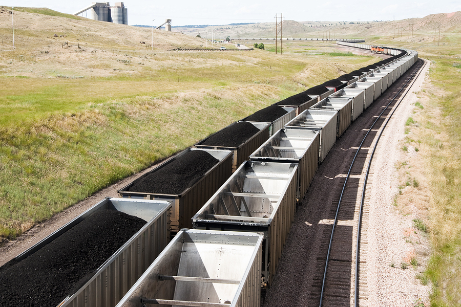 A train takes coal from a Wyoming mine to a nearby power plant. Wyoming is home to the Powder River Basin, which contains one of the government's largest coal deposits.