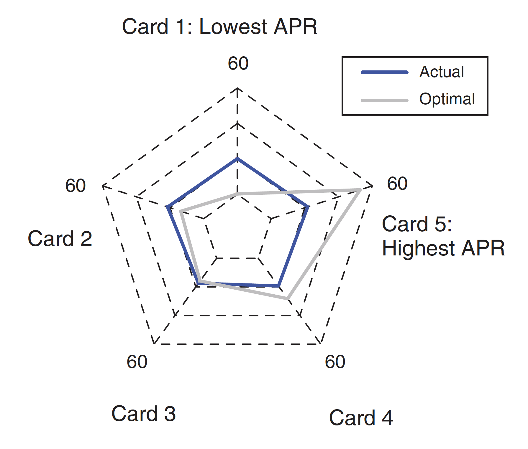 This made payments across credit cards an ideal setting for the authors to study how financially savvy borrowers actually are. In this context, paying off the card with the highest interest rate, after making minimum payments on all of their cards, is unambiguously the optimal choice for borrowers.