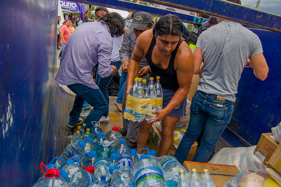 Volunteers provide disaster relief after a 2016 earthquake in Ecuador.