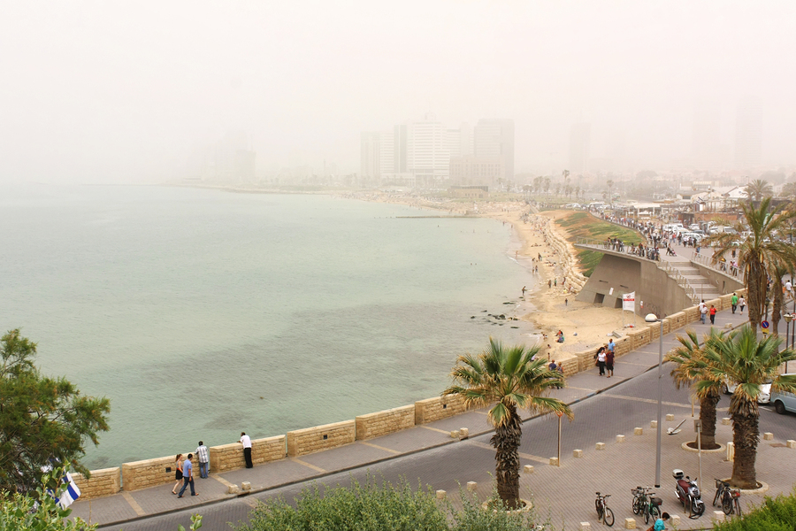 Sand storms like this one in Tel Aviv in April 2013 can cause dramatic swings in air quality and have severe consequences for students who take high-stakes exams when pollution levels are high.