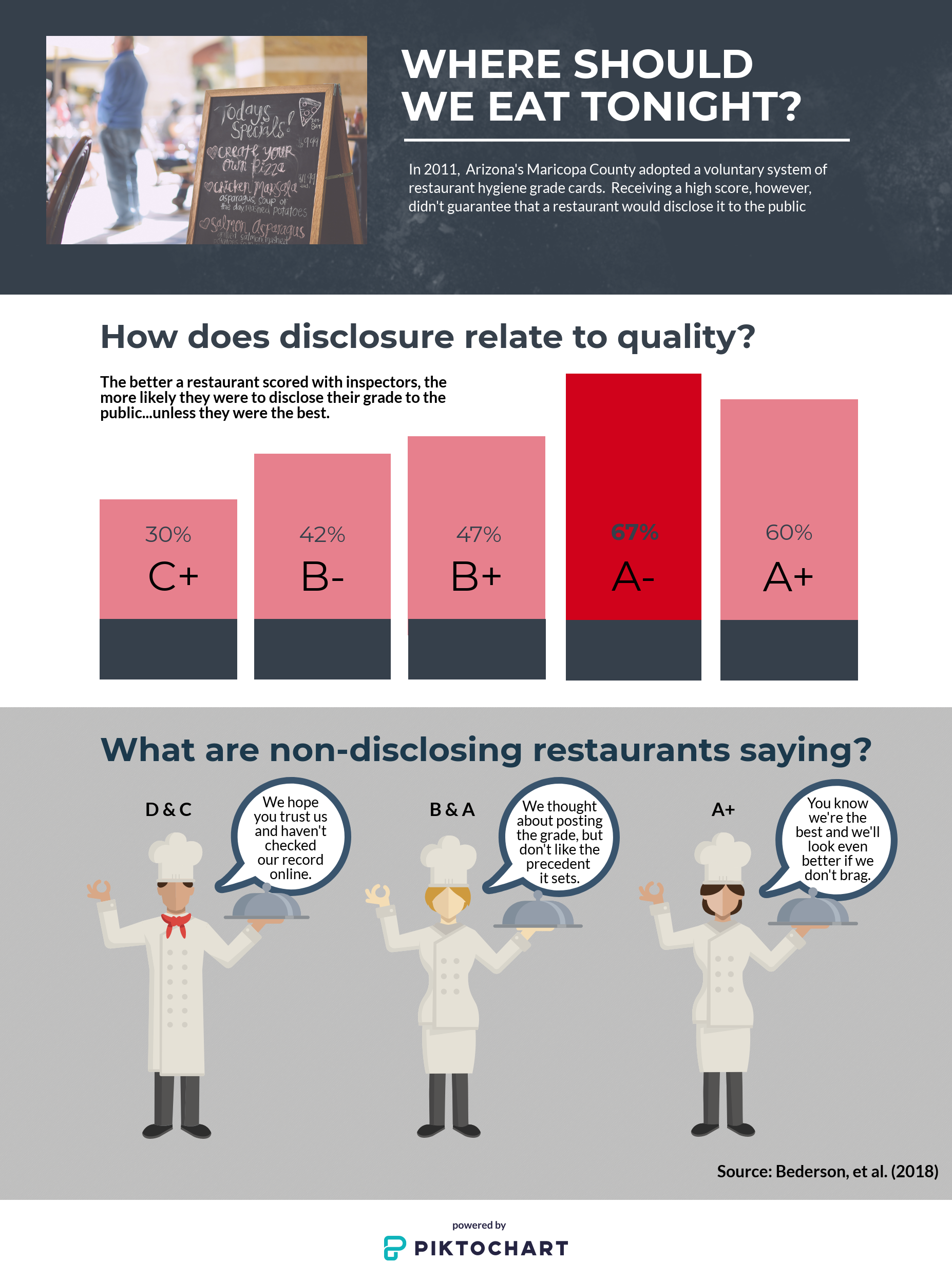 A paper that appears in the February issue of American Economic Journal: Microeconomics found that many of the best restaurants — the A+ establishments — choose not to disclose their inspection scores to the public, contradicting what common sense and classical economic theory predict.
