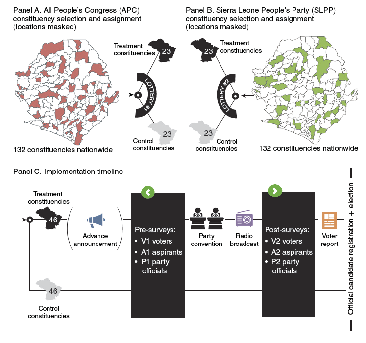 The authors partnered with both major political parties in a novel experiment for the 2018 parliamentary elections. A total of 46 races out of 132 constituencies nationwide participated. A random subset of those races incorporated a more US-style primary system, where aspiring candidates presented their qualifications at a party convention that was broadcast to local residents over the radio. The authors followed up with opinion polling to gauge voter preferences, which were then shared with party officials in a one-page report.