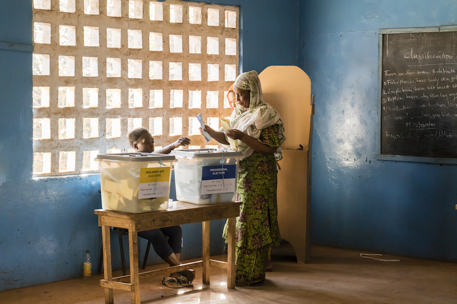 A woman casts her ballot in Sierra Leone's elections in March 2018.
