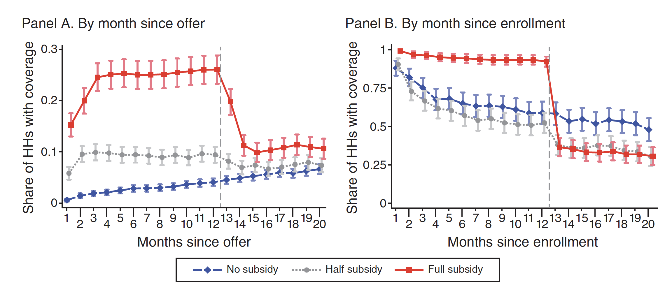 The experiment showed that temporary subsidies boosted enrollment, even a year after the subsidies expired. At the same time, the financial health of the program improved because the subsidies brought in healthier enrollees with fewer claims. As a result, the government was eventually able to cover substantially more people at no higher total cost.