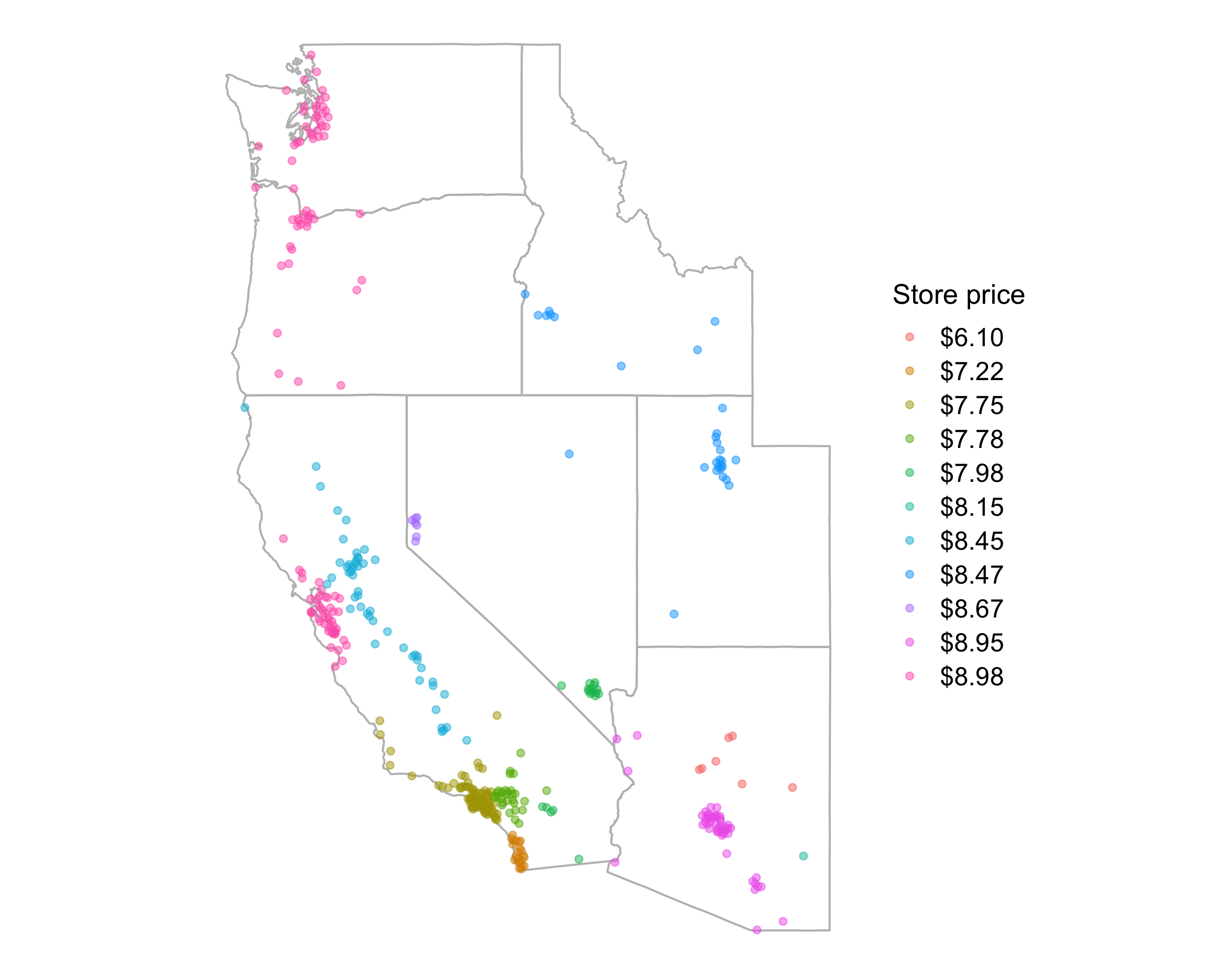 Some variation isn’t too surprising since regions differ in many important ways. Some locations have a more expensive workforce, due to minimum wage laws for example. And others don’t have much demand for certain goods, so prices are lower; not many people are looking for snow shovels in Los Angeles.